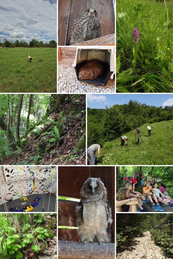 V ľavom hornom rohu je fotografia bociana bieleho, ktorého sa pracovníkom CHKO Strážovské vrchy podarilo zrehabilitovať tak, že mohol byť vypustený to voľnej prírody a po čase odletieť do Afriky.